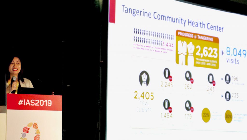 Kritima Samitpol of the Thai Red Cross AIDS Research Centre also presented an Oral Poster Discussion on “Integrating gender-affirming hormone treatment into HIV services facilities access to HIV testing, syphilis testing, PrEP, and other sexual health services among transgender women in Thailand”, focusing on the Tangerine Community Health Centre in Thailand as a highly successful case study.